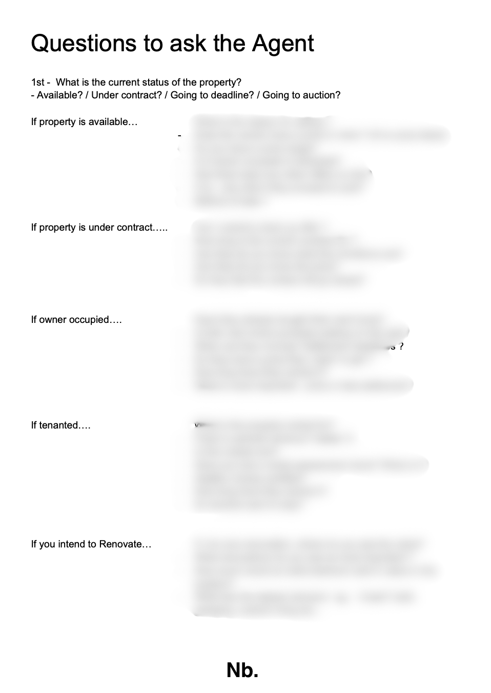 Want a list of the questions I ask agents at every open home I go to ?